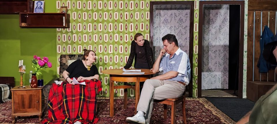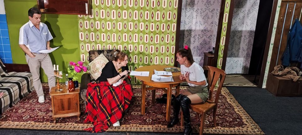 19 августа на Новой сцене Донецкого государственного академического музыкально-драматического театра имени М.М. Бровуна провели открытую репетицию будущего премьерного спектакля по пьесе Надежды Птушкиной «Пока она умирала», который ставит приглашённый режиссёр Денис Кожевников. Журналисты увидели рабочий процесс, стали первыми зрителями нескольких сцен лирической комедии и смогли пообщаться с актёрами и режиссёром.