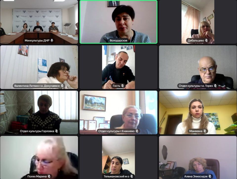 В формате видеоконференцсвязи (ВКС) провели рабочее совещание с начальниками департаментов, управлений и отделов культуры Донецкой Народной Республики. В фокусе нашего внимания была ключевая задача – реализация национального проекта «Семья».