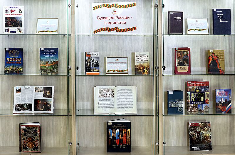 Экспозиция, приуроченная ко Дню народного единства, нацелена на укрепление гражданского согласия и воспитание патриотизма. В книгах — история великой страны, сила духа и мудрость предков, которые в самые трудные времена находили опору в сплочённости.