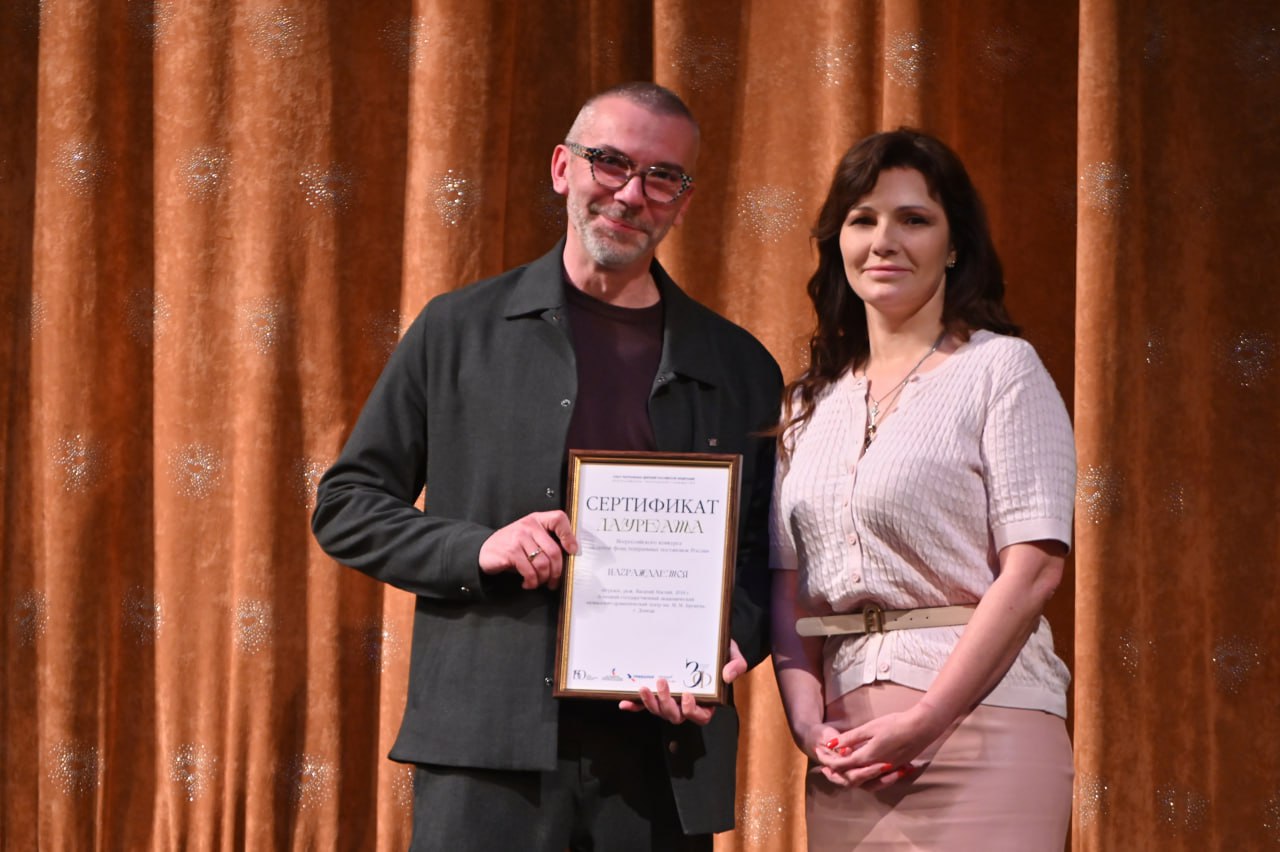 Коллектив МДТ имени М.М. Бровуна продолжает получать заслуженные награды за профессиональные достижения. Пятничный показ криминально-музыкальной комедии «Игроки» режиссера Василия Маслия стал особенным для всего творческого коллектива. Перед началом спектакля Председатель Донецкого регионального отделения СТД РФ, генеральный директор – художественный руководитель театра Наталья Волкова вручила Василию Анатольевичу Сертификат лауреата Всероссийского конкурса «Золотой фонд театральных постановок России», в числе которых и донецкий зажигательный спектакль по пьесе Николая Гоголя.