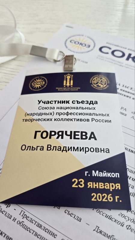 Генеральный директор-художественный руководитель Заслуженного государственного академического ансамбля песни и танца «Донбасс» Ольга Горячева стала участником съезда Союза национальных творческих коллективов, который прошёл 23-24 января в столице Республики Адыгея Майкопе.