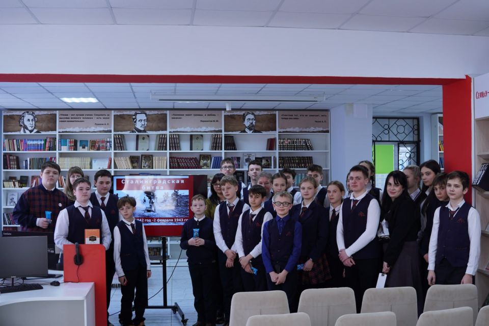 В преддверии Дня защитника Отечества сотрудники Донецкой республиканской библиотеки для молодежи провели урок мужества «В огне и дыму Сталинграда» для учащихся школ и семей участников СВО. Площадкой для встречи выступила библиотека-филиал № 2 Семейного чтения города Енакиево.