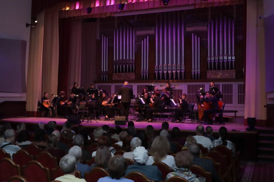 В филармонии в пятницу, 13 февраля, прошел концерт «Рок&кадриль», в котором народные мотивы обрели современное звучание. В программе приняли участие Мария Бударина (балалайка-прима, Москва) и Молодёжный оркестр народных инструментов под управлением Александра Малиновского.