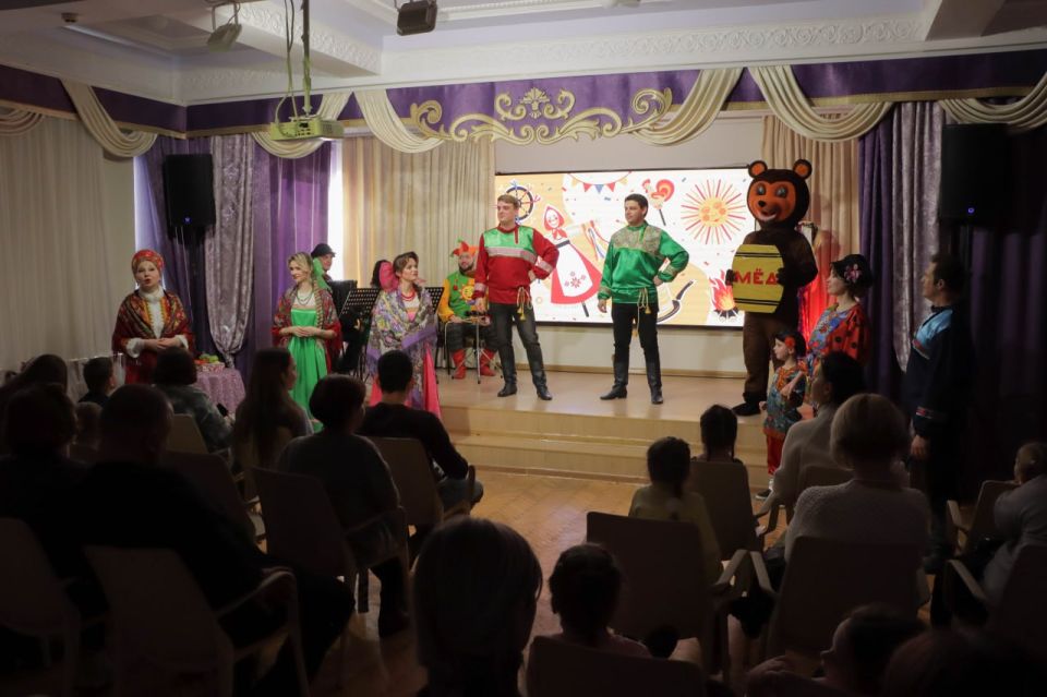 Вокалисты Дмитрий Читах, Константин Шатохин, Артём Шандра, Екатерина Гладышева, Юлия Кузина, Анастасия Тевякова, а также инструменталисты Андрей Динисюк (баян), Артём Толуп (ударные) создали живую атмосферу народного гуляния. Прозвучали любимые песни: «Светит месяц», «Коробейники», «Вдоль по Питерской», «Выйду на улицу», «Ой блины, мои блины», «Рынок», «Калинка», «Прощай, Масленица», которые сопровождались шутками и веселыми викторинами, в которых с радостью участвовали маленькие зрители. Ребята водили хороводы, отгадывали загадки, подпевали артистам.