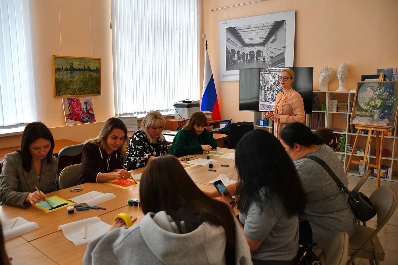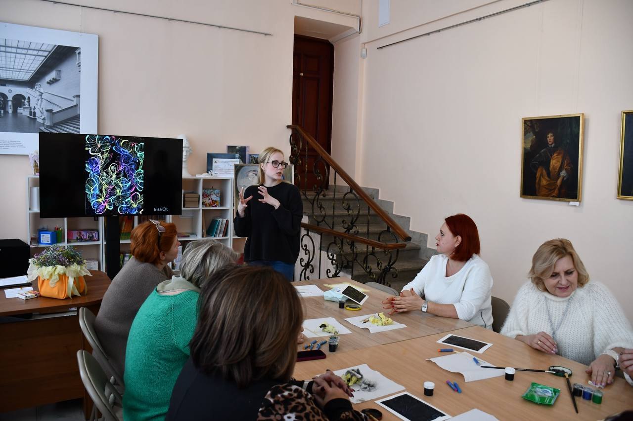 В рамках визита лектор-экскурсовод музея Волобуева Мария Геннадиевна познакомила гостей с экспозицией Донецкого республиканского художественного музея, проведя экскурсию «О чём расскажут картины». Участники встречи смогли по-новому взглянуть на произведения из музейной коллекции, узнать интересные факты о творчестве художников и эпохах, в которые создавались представленные полотна.