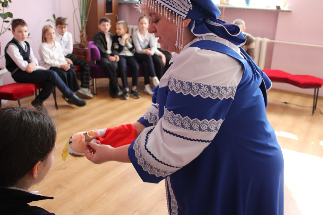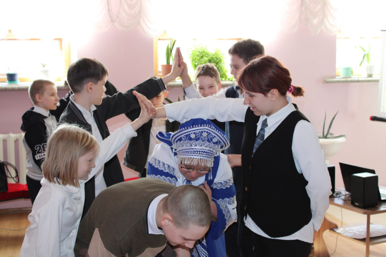 Сотрудники отдела организации досуга для детей в рамках Лаборатории провели 11 марта для обучающихся донецкой школы № 8 историко-географическое путешествие «Письменность: от петроглифа до стилуса». В гости к детям пришла Арина Родионовна, няня Александра Пушкина, которая
