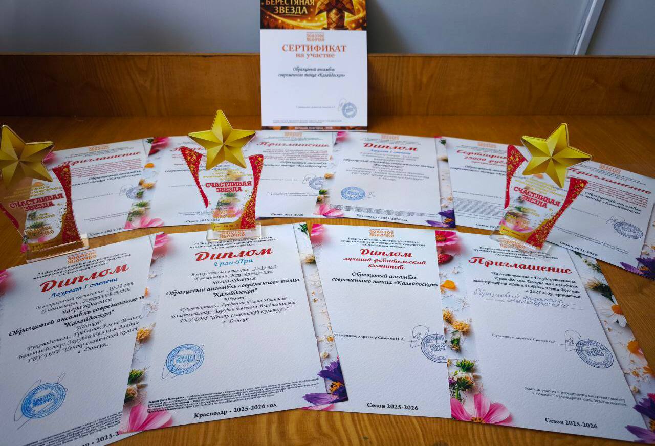 С 13 по 15 марта, Образцовый ансамбль современного танца «Калейдоскоп» принял участие во Всероссийском конкурсе-фестивале музыкально-художественного творчества «Счастливая звезда» в Краснодаре. Юные артисты стали Лауреатами I степени и обладателями Гран-при, в номинации «Эстрадный танец».