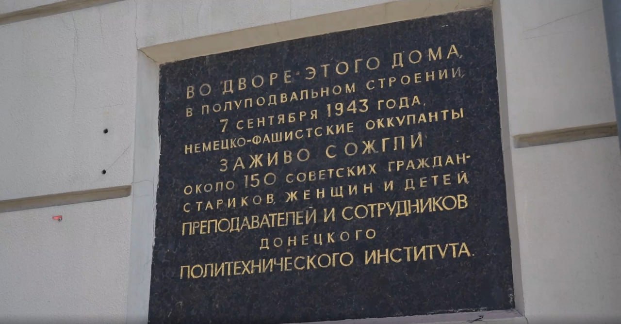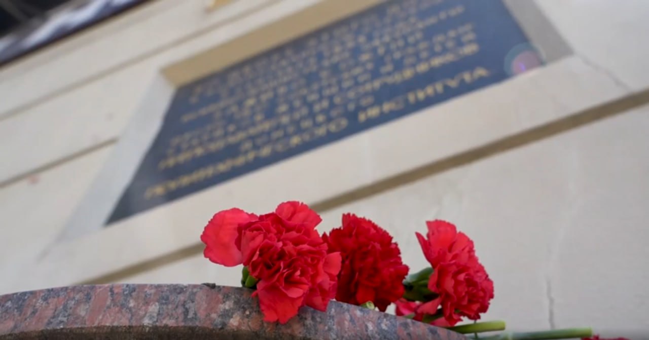 В преддверии Дня памяти жертв нацизма сотрудники Донецкого театра оперы и балета возложили цветы к мемориальной табличке на улице Университетской, 51.