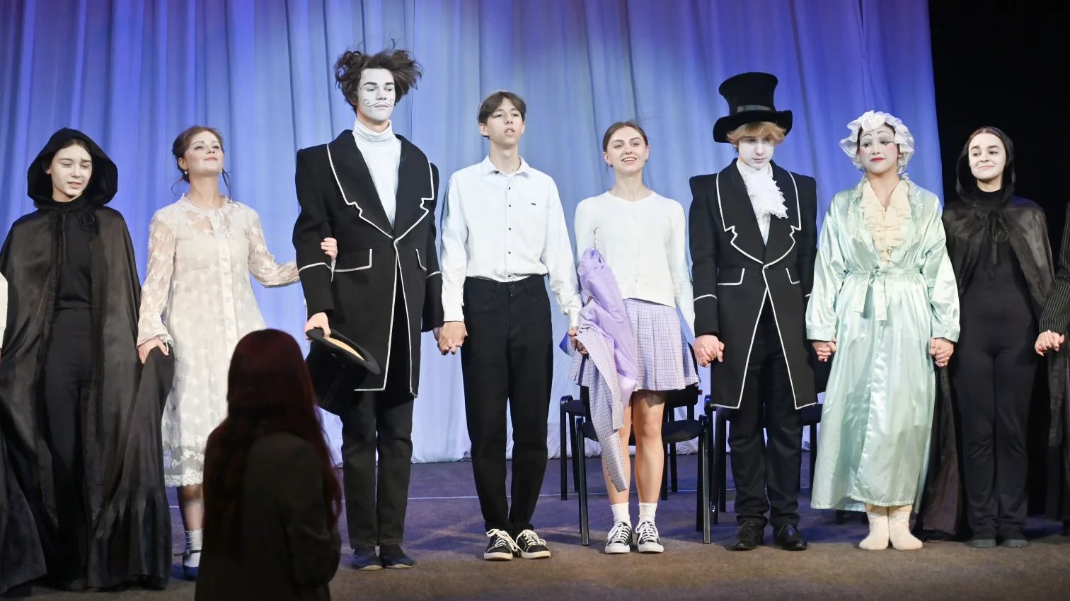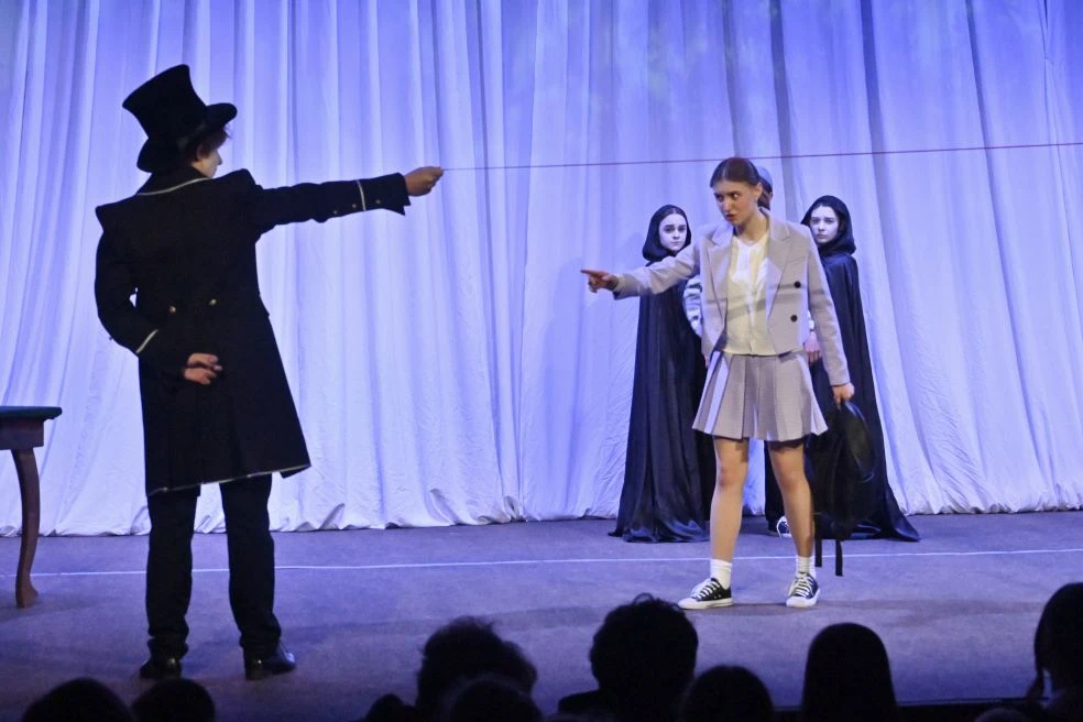 Главным триумфатором смотра, очный этап которого проходил с 17 по 19 апреля в г. Донецке, стал их спектакль «Онегин и двое из 9 Б» — смелая, ироничная и глубокая постановка, которая заставила жюри и зрителей по-новому взглянуть на школьную программу.