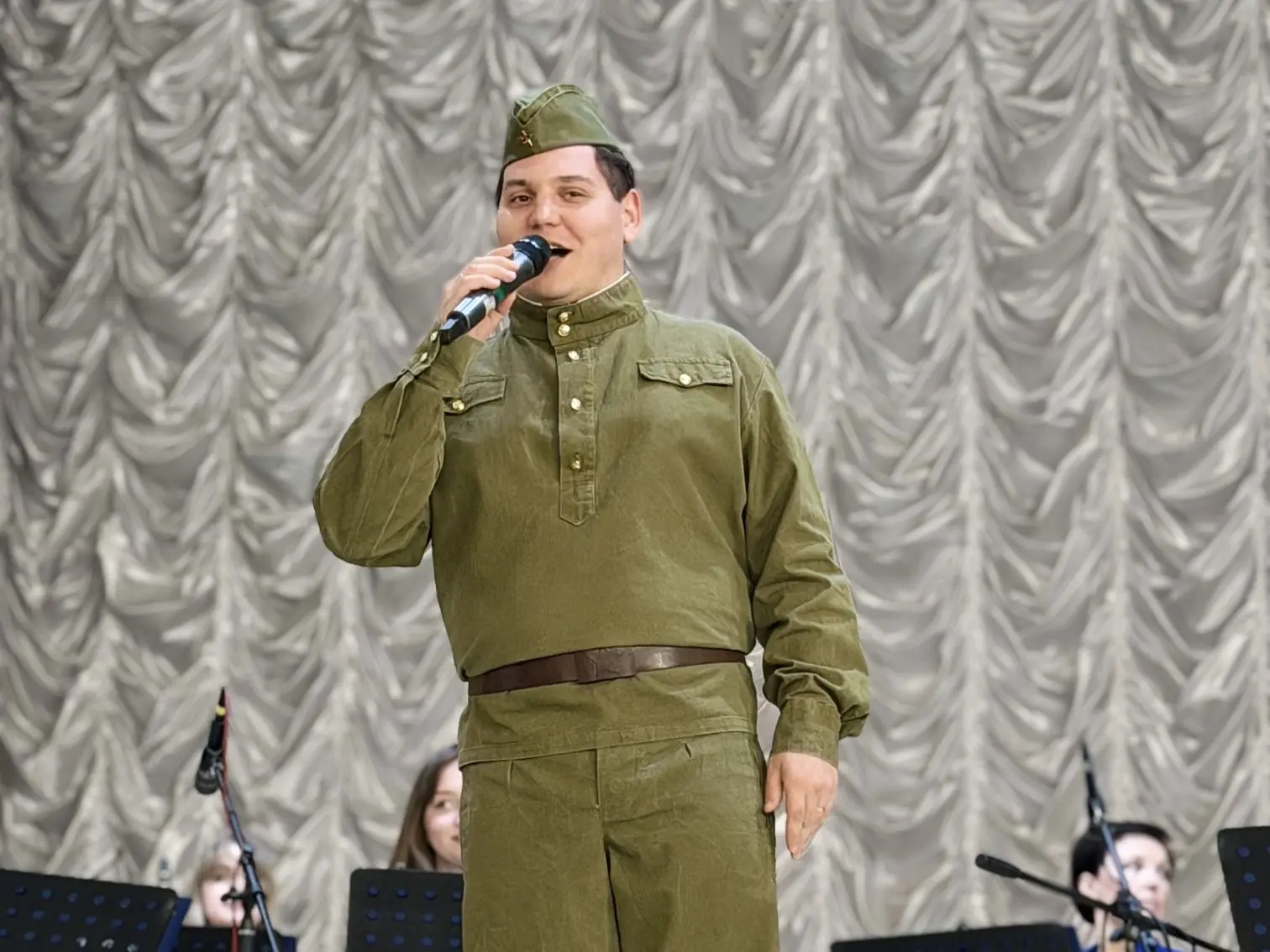 Вниманию зрителей солисты-вокалисты Евгений Васькин, Анатолий Миняйло, Валерия Лелеко и Анастасия Дмитриева в сопровождении эстрадно-симфонического оркестра ансамбля представили программу, в которую вошли произведения о войне и Победе — как военных лет, так и уже современные.