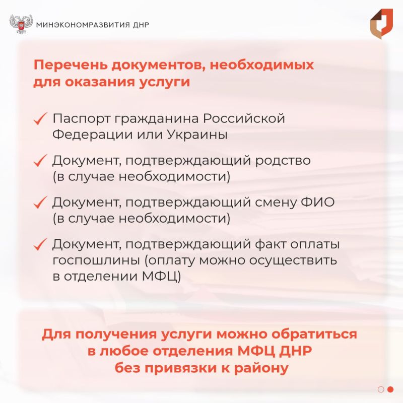Обращаем внимание, что теперь повторное свидетельство, выданное Управлением ЗАГС ДНР, будет оформляться на бланке российского образца.