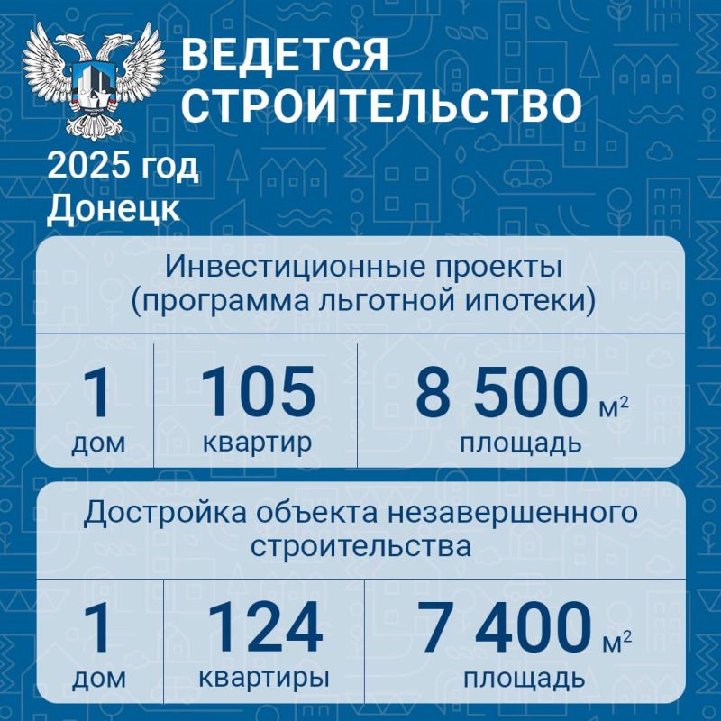 Планы по строительству и восстановлению жилья в республике у нас амбициозные – в 2025 году запланировано построить 753 тысячи кв. метров жилья. Более половины площади приходится на многоквартирные дома. Отмечу, что за два предыдущих года (2023-2024 гг.) в Донецкой Народной Республике всего было введено в эксплуатацию 750 тысяч кв. метров жилья. По сравнению с прошлыми годами в 2025 году мы существенно наращиваем темпы строительства и стремимся обеспечить граждан качественным жильем, которое будет отвечать всем современным требованиям.