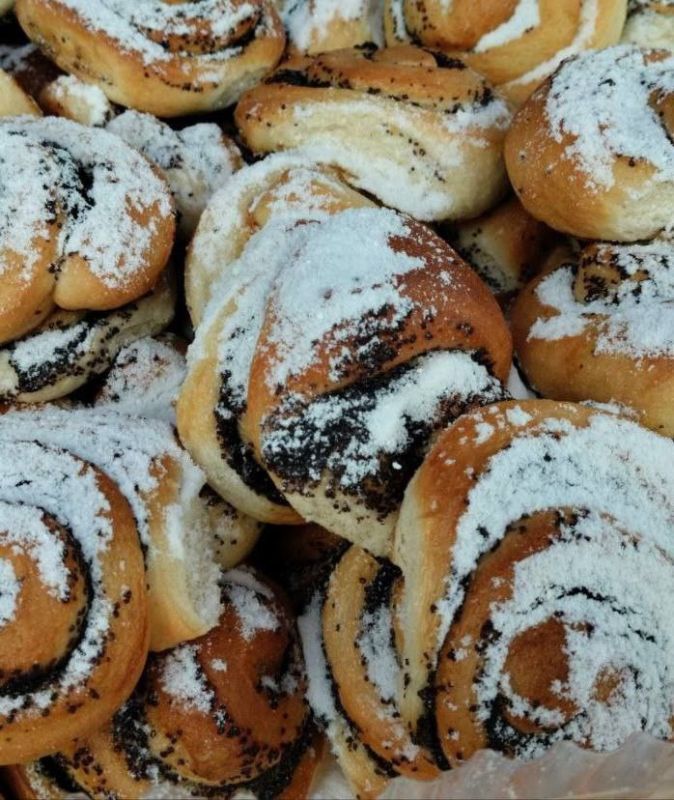 На прилавках ярмарки были представлены свежие и натуральные товары, среди которых: выпечка, разнообразные виды колбас, а также свежие овощи и фрукты.
