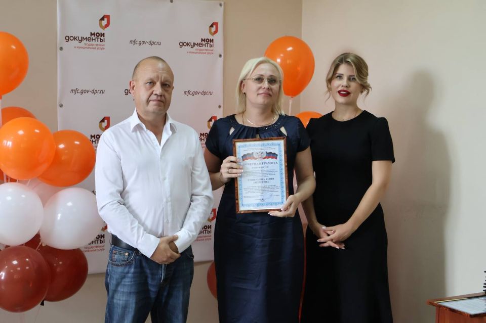 День работника МФЦ ежегодно отмечается 27 июля. В преддверии этого дня состоялось мероприятие, где в торжественной обстановке сотрудникам, чьи заслуги и профессионализм были отмечены на высоком уровне, вручены благодарности Правительства Донецкой Народной Республики, почетные грамоты Министерства экономического развития Донецкой Народной Республики и почетные грамоты ГБУ "МФЦ ДНР".