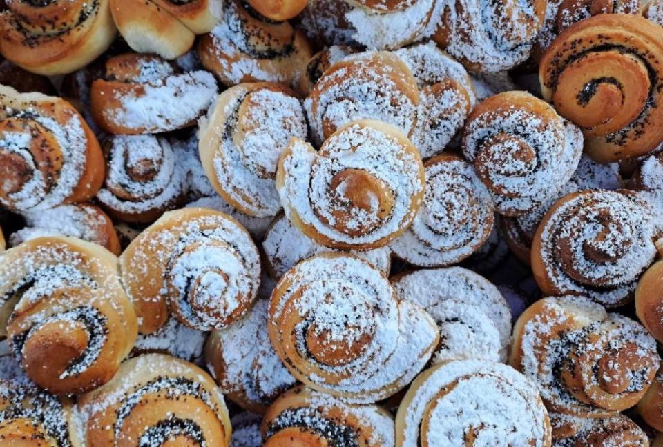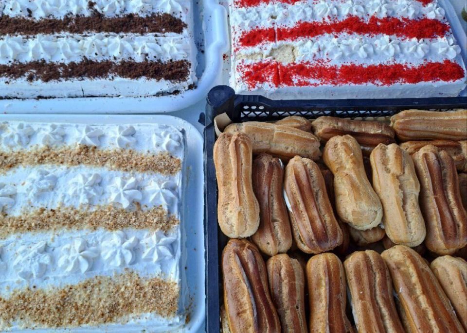 На прилавках ярмарки были представлены свежие и натуральные товары, среди которых: выпечка, разнообразные виды колбас, а также свежие овощи и фрукты.