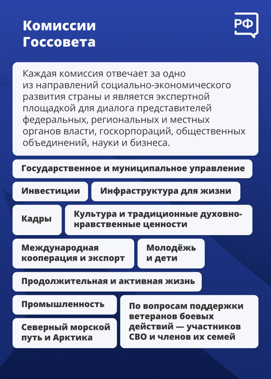 Приоритеты развития страны, основные направления внутренней и внешней политики, взаимодействие разных органов власти — вот основные вопросы, которыми занимается Государственный Совет.