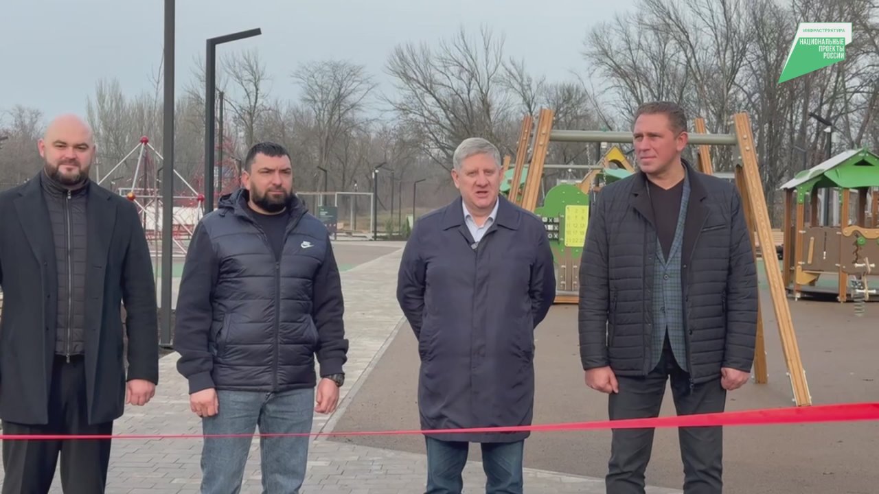 Сегодня торжественно открыли сквер в Докучаевске. В мероприятии приняли участие Председатель Правительства ДНР Андрей Чертков, Глава администрации г.о.Докучаевск Александр Качанов и представители подрядной организации, проводившей здесь строительные работы.