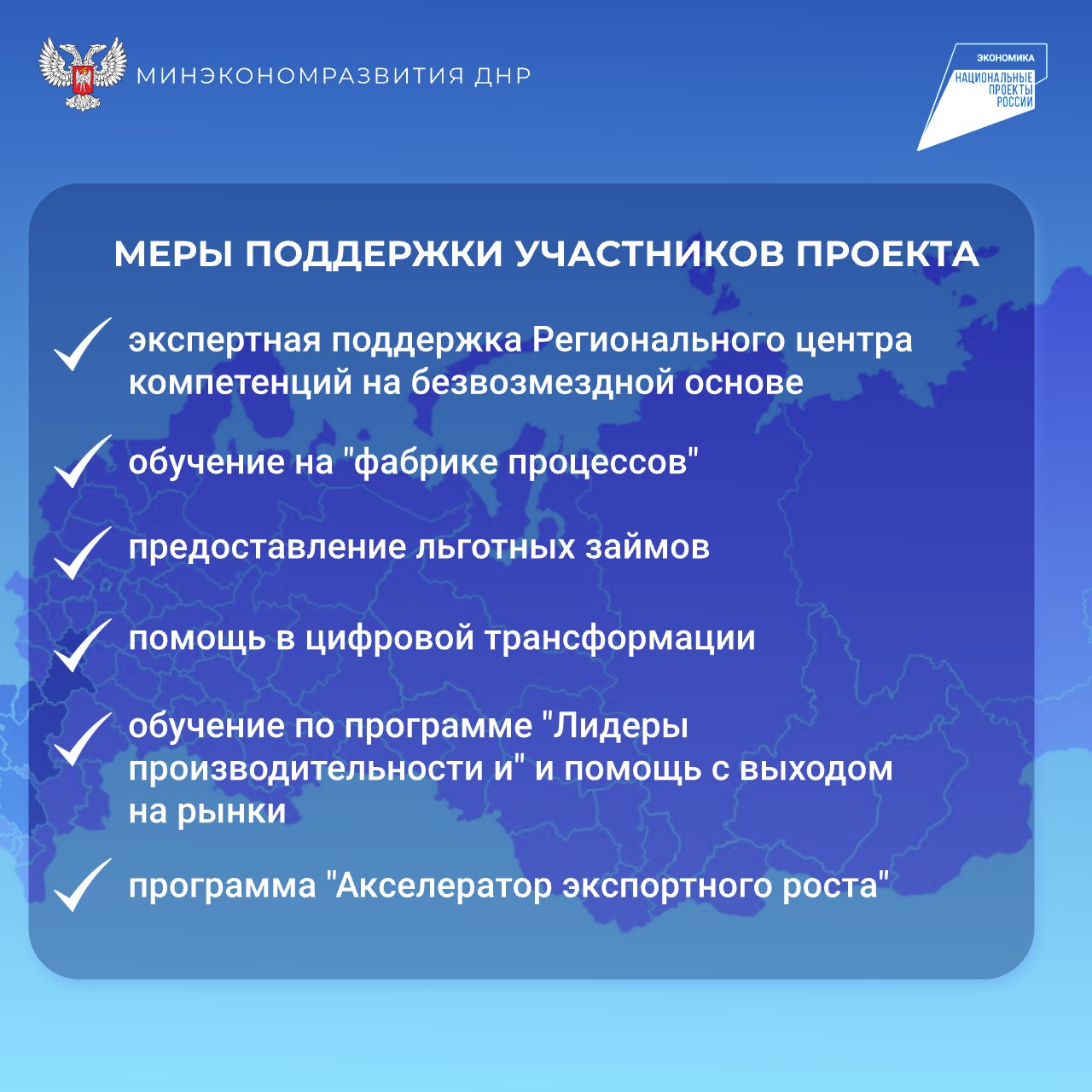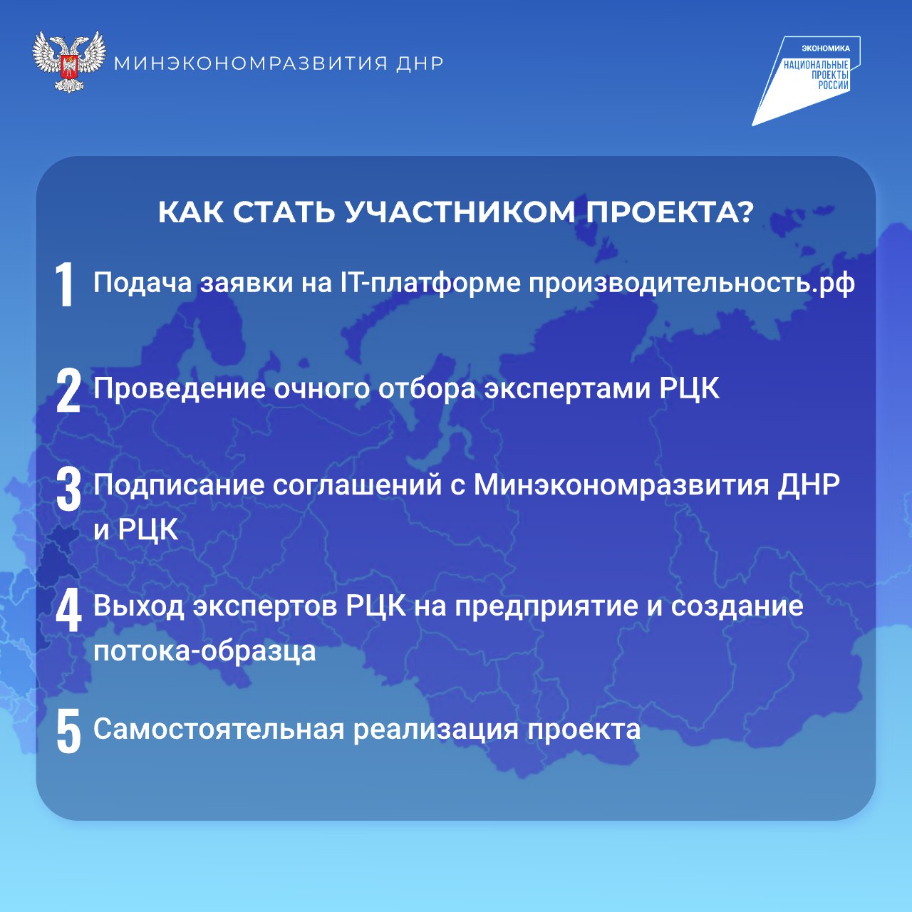 С начала 2025 года Донецкая Народная Республика активно включается в федеральный проект «Производительность труда», входящий в состав национального проекта «Эффектиная и конкурентная экономика», который направлен на: