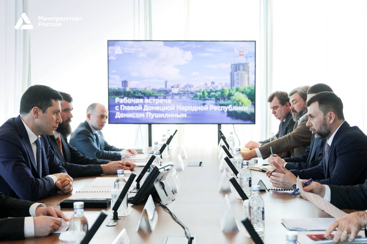 Министр обсудил с главой ДНР развитие промышленного потенциала региона и направления дальнейшей работы по восстановлению предприятий республики.
