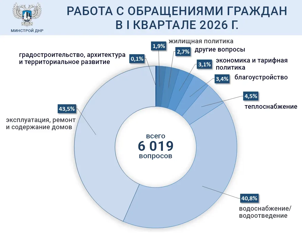 В I квартале текущего года в Минстрой ДНР поступило более 5,7 тыс. обращений граждан с 6 тыс. вопросов.