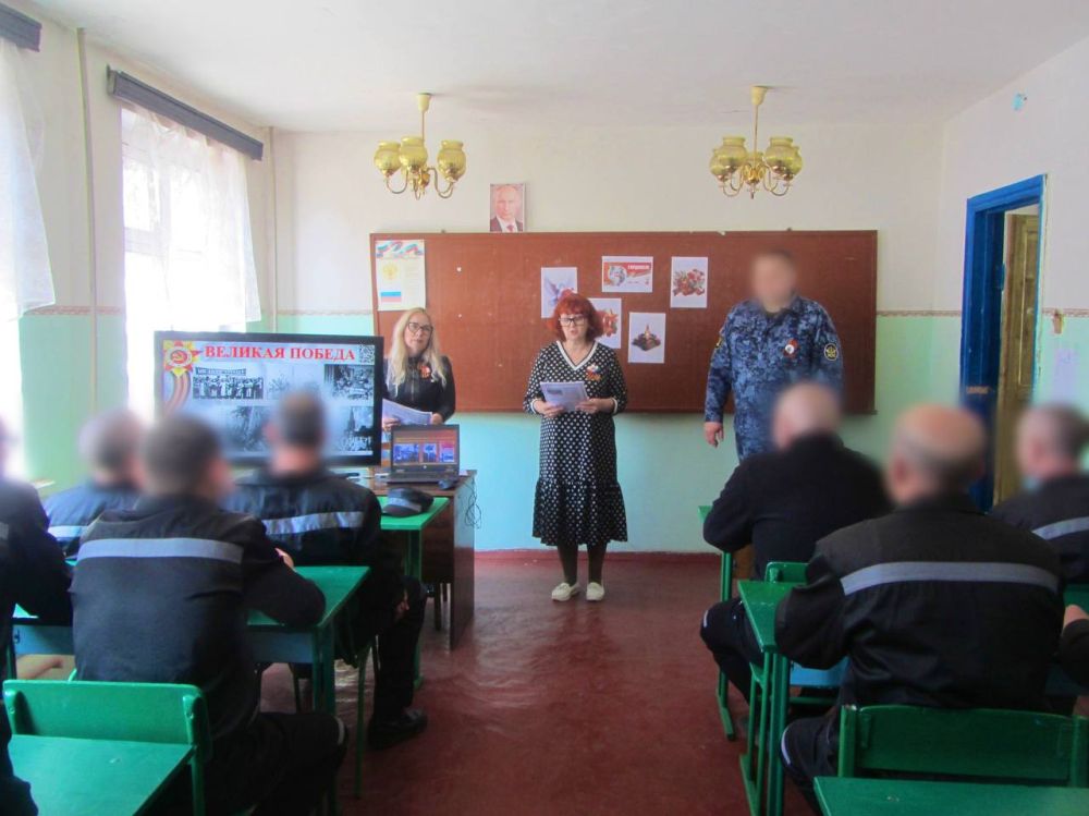 Педагоги ГБОУ «Средняя школа №3 городского округа Снежное» совместно с воспитательным отделом ИК-10 организовали для осужденных женщин патриотический час «Поклонимся Великим тем годам...», который посвящен 80-й годовщине Победы в Великой Отечественной войне. Учителя рассказали осужденным о трудном военном времени, о подвигах наших солдат, о тружениках тыла, о детях-героях и женщинах, принимавших участие в боевых действиях, также прозвучали стихотворения о подвиге солдат. В завершение мероприятия почтили минутой молчания память всех павших на поле боя и пропавших без вести. Патриотический час ко Дню Победы стал важным шагом в воспитании уважения к исторической памяти и формировании духовных и моральных ценностей у осужденных женщин.
