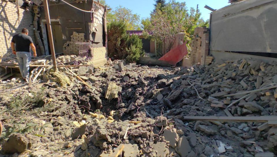 Георгий Медведев: Центр Горловки подвергся комбинированному удару: атаковали ракетами и дронами, последствия серьезные - несколько домов частного сектора уничтожены полностью