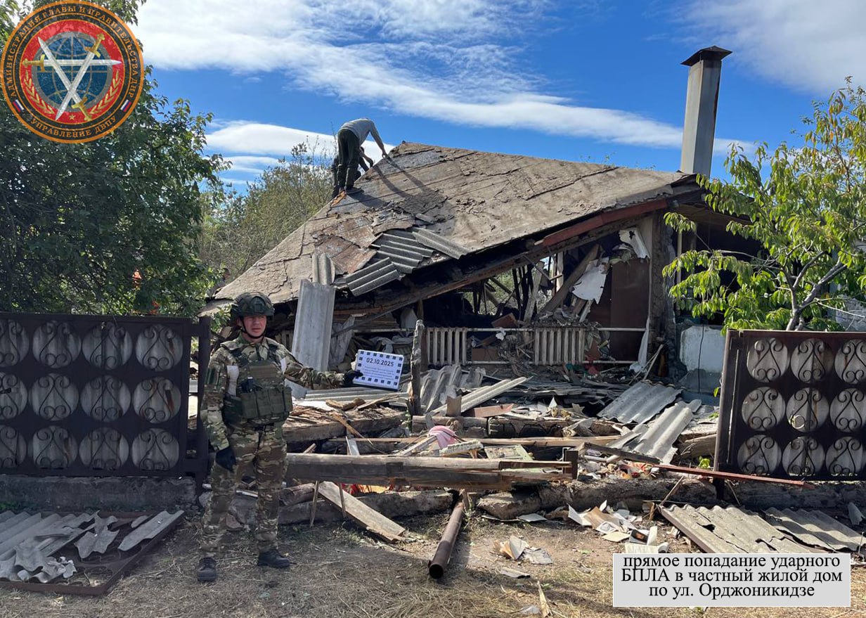 Задокументировано прямое попадание ударного БПЛА в частный жилой дом по ул. Орджоникидзе, еще 2 частных жилых дома по ул. Свердлова получили повреждения кровли, остекления, хозпостроек и ограждения.