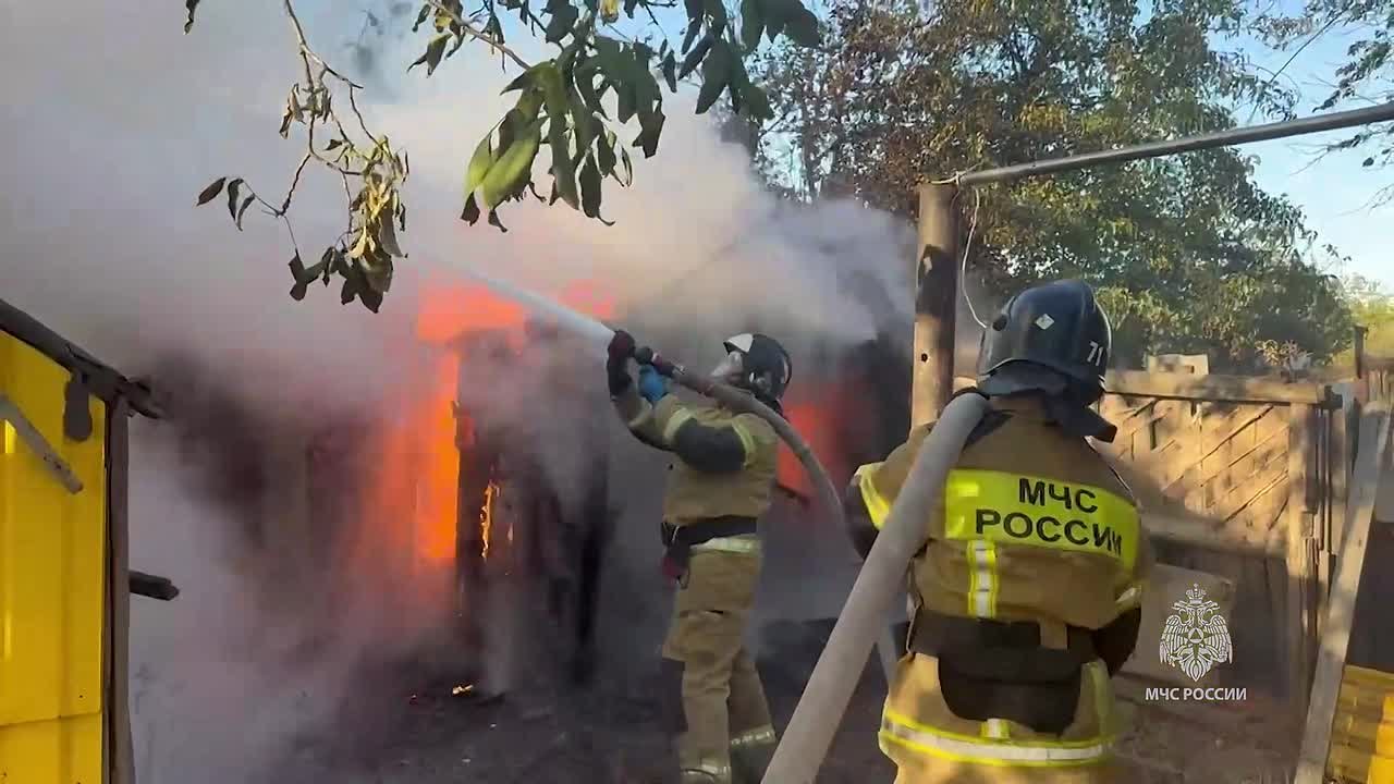 В результате - огнём уничтожена деревянная хозпостройка и повреждено 12 квадратов кровли нежилого дома.