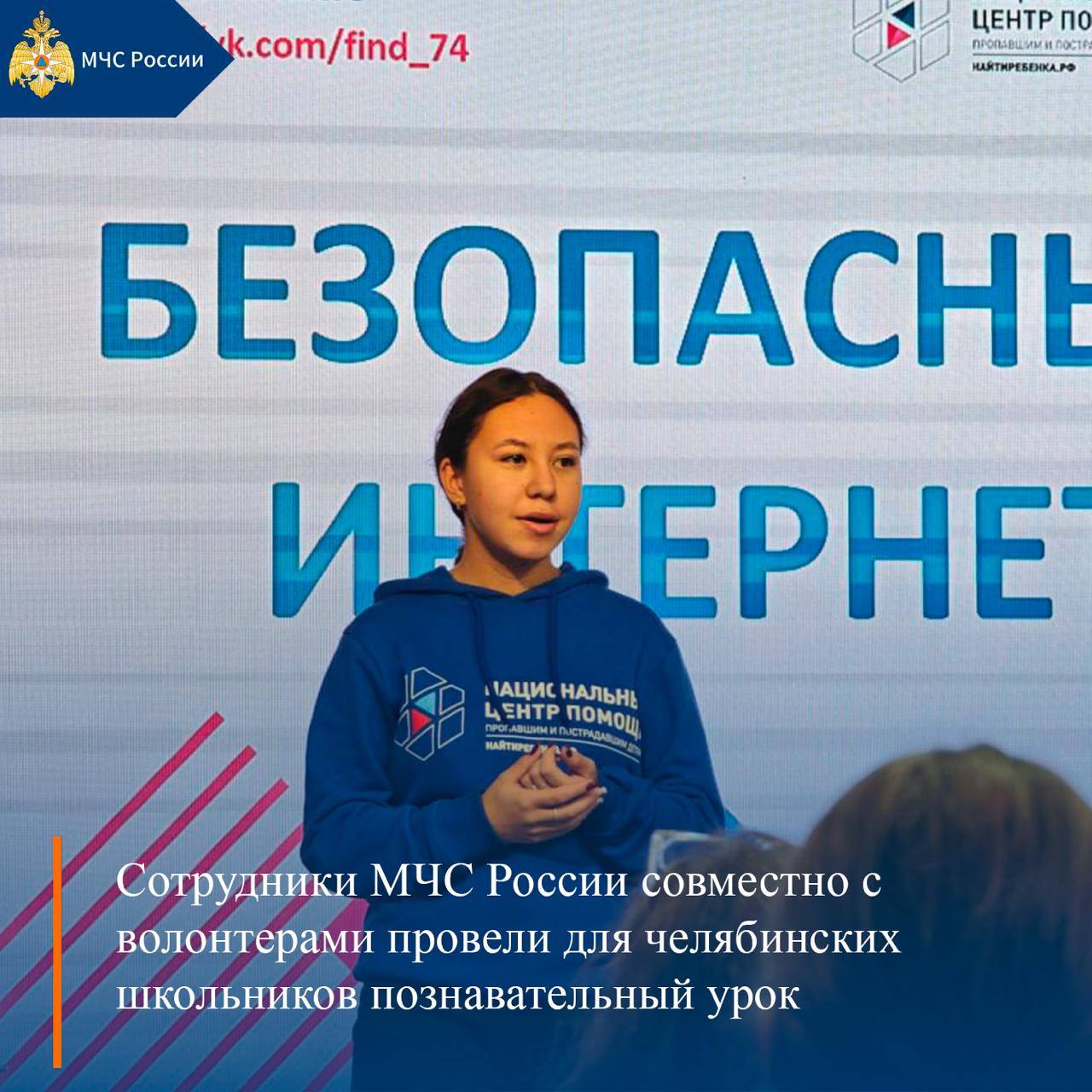 Сотрудники МЧС России совместно с волонтерами Национального центра помощи пропавшим и пострадавшим детям провели для челябинских школьников познавательный урок