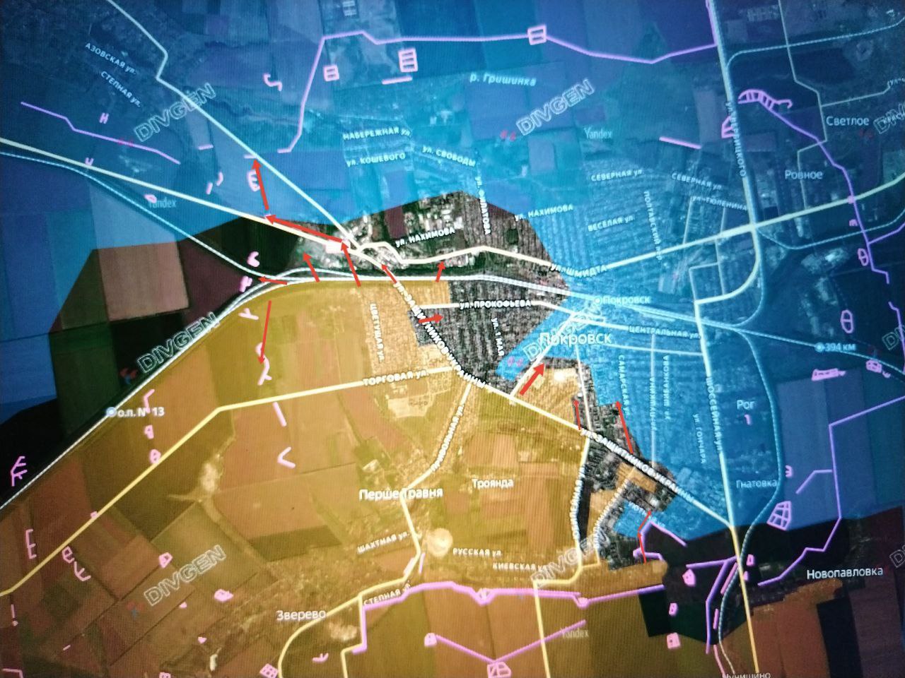 В центре Покровска наши подразделения продвинулись вдоль ул. Богдана Хмельницкого до ул. Ивана Франко, охватывая высотную застройку параллельно подразделениям в районе Дворца пионеров (ул. Чкалова).