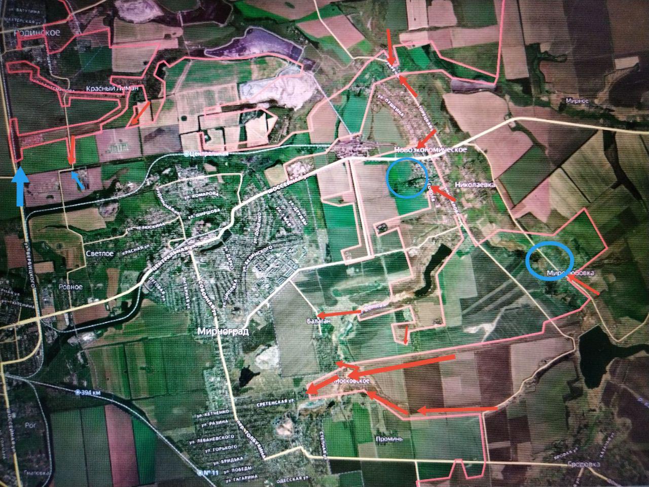 С севера ВС РФ продвинулись от посёлка Красный Лиман в направлении ферм у северо-западной окраины Мирнограда.
