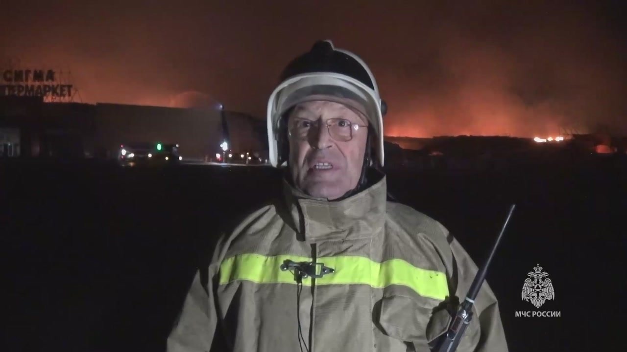 Вчера вечером из-за массированной атаки БПЛА загорелся торговый гипермаркет площадью 22 тысячи квадратных метров: обрушилась кровля здания.