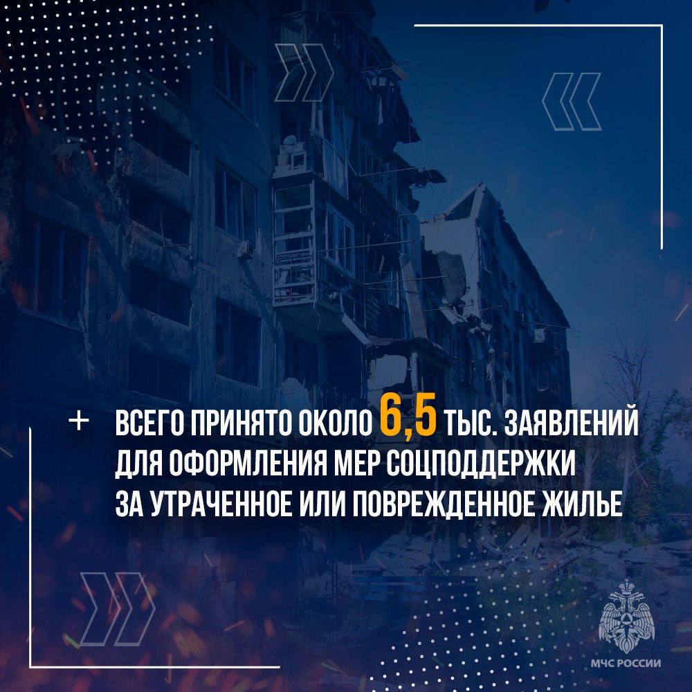 Организована работа пяти временных пожарных постов. Подразделения МЧС России продолжают разминирование территорий и разбор завалов.