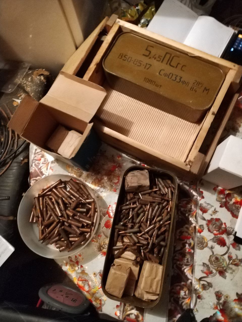 В ходе обыска по месту жительства подозреваемого 1985 года рождения оперативники обнаружили и изъяли предметы, внешне и конструктивно схожие с пистолетом Макарова с глушителем, а также штык-нож, патроны калибра 5,45 мм. в количестве более 1500 штук, патроны калибра 7,62 мм. в количестве около 150 штук, боевые гранаты, противотанковые гранаты, электродетонатор, более 30 упаковок тротила.