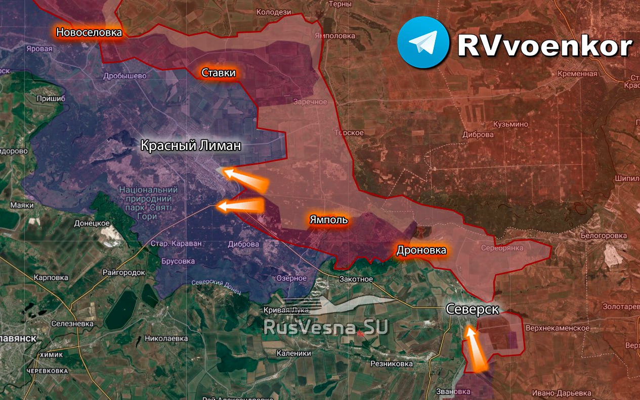 На Лиманском направлении российские войска стремятся продвигаться в направлении Северского Донца и обходить Лиман южнее города.