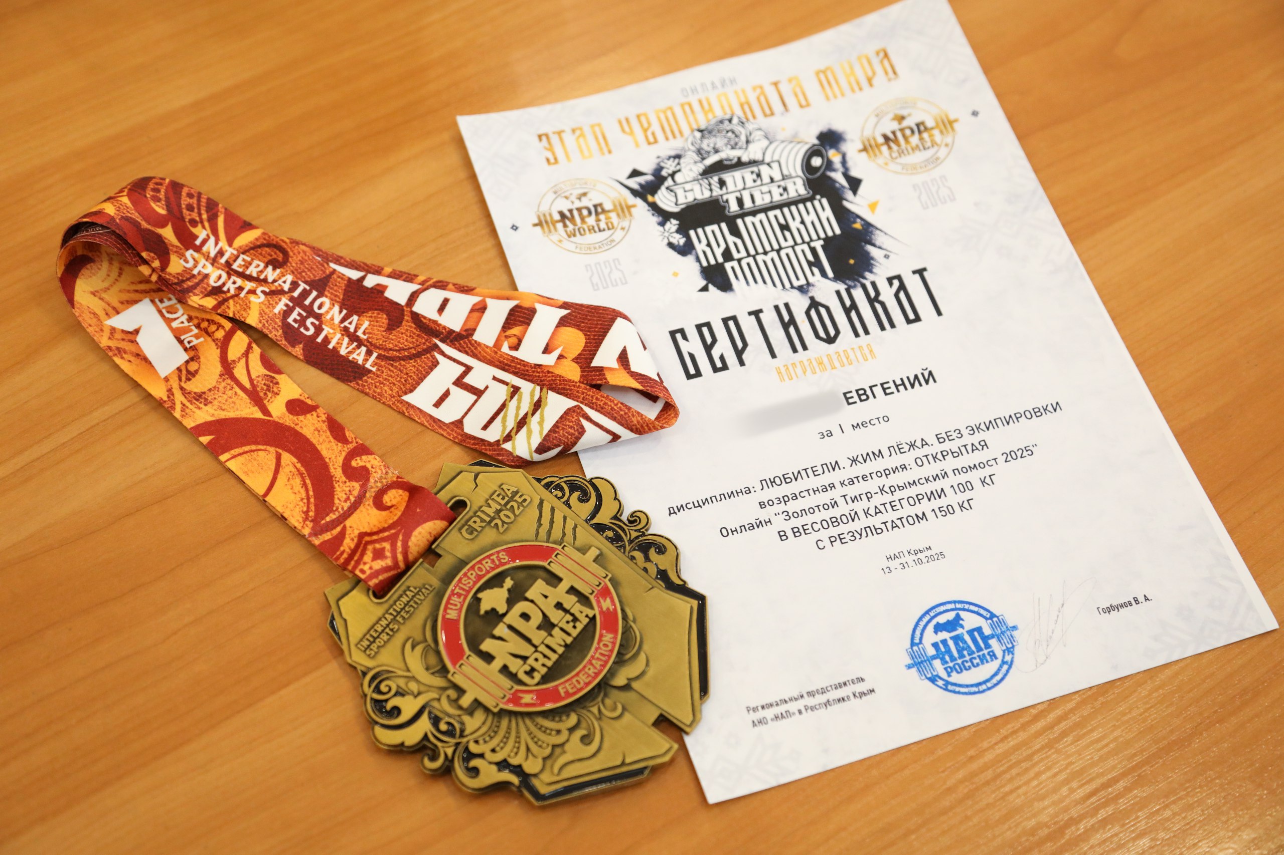 С 13 по 31 октября на базе одного из спортивных клубов Донецка состоялся онлайн этап чемпионата мира «Золотой Тигр – Крымский помост 2025» по дисциплине: любители, жим лежа без экипировки. Заместитель начальника отдела тылового обеспечения ГУФСИН России по Донецкой Народной Республике капитан внутренней службы Евгений К. выступил с результатом 150 кг в весовой категории до 100 кг и занял 1 место, выполнив норматив кандидата в мастера спорта по жиму лежа без экипировки.