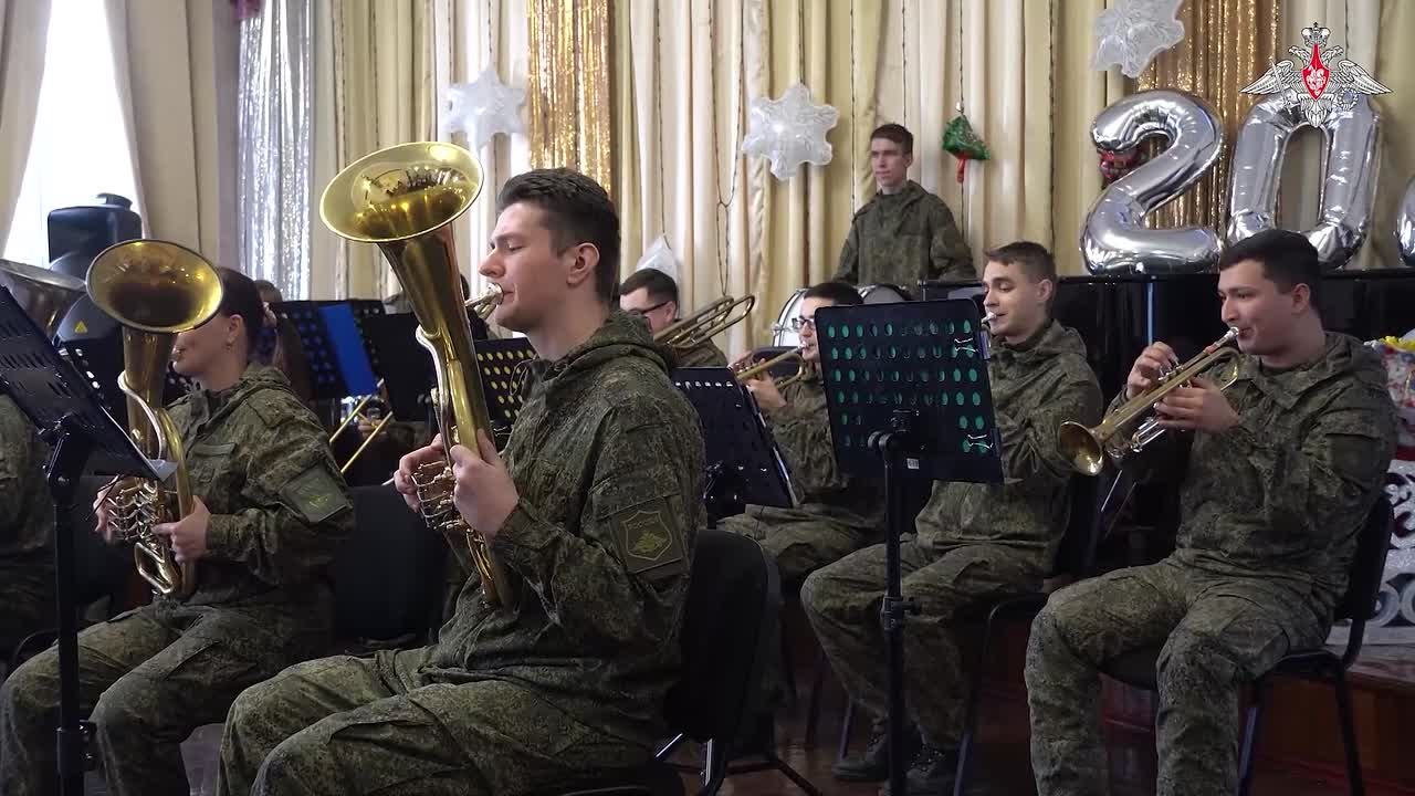 Духовой оркестр 30-й отдельной мотострелковой бригады 2-й гвардейской общевойсковой армии группировки «Центр» в преддверии Рождества Христова выступил для учащихся детской школы искусств в ДНР.