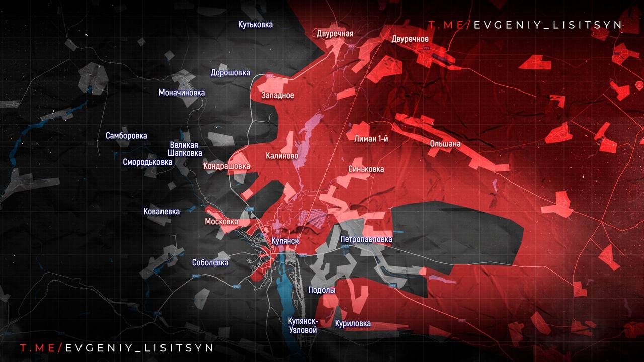 Достигнуты оперативные успехи: перерезана дорога у Коровьего Яра, ведутся бои на окраинах Александровки, отмечено продвижение в районе Яровой и Святогорска. Группировка противника в районе Красного Лимана находится в полуокружении.