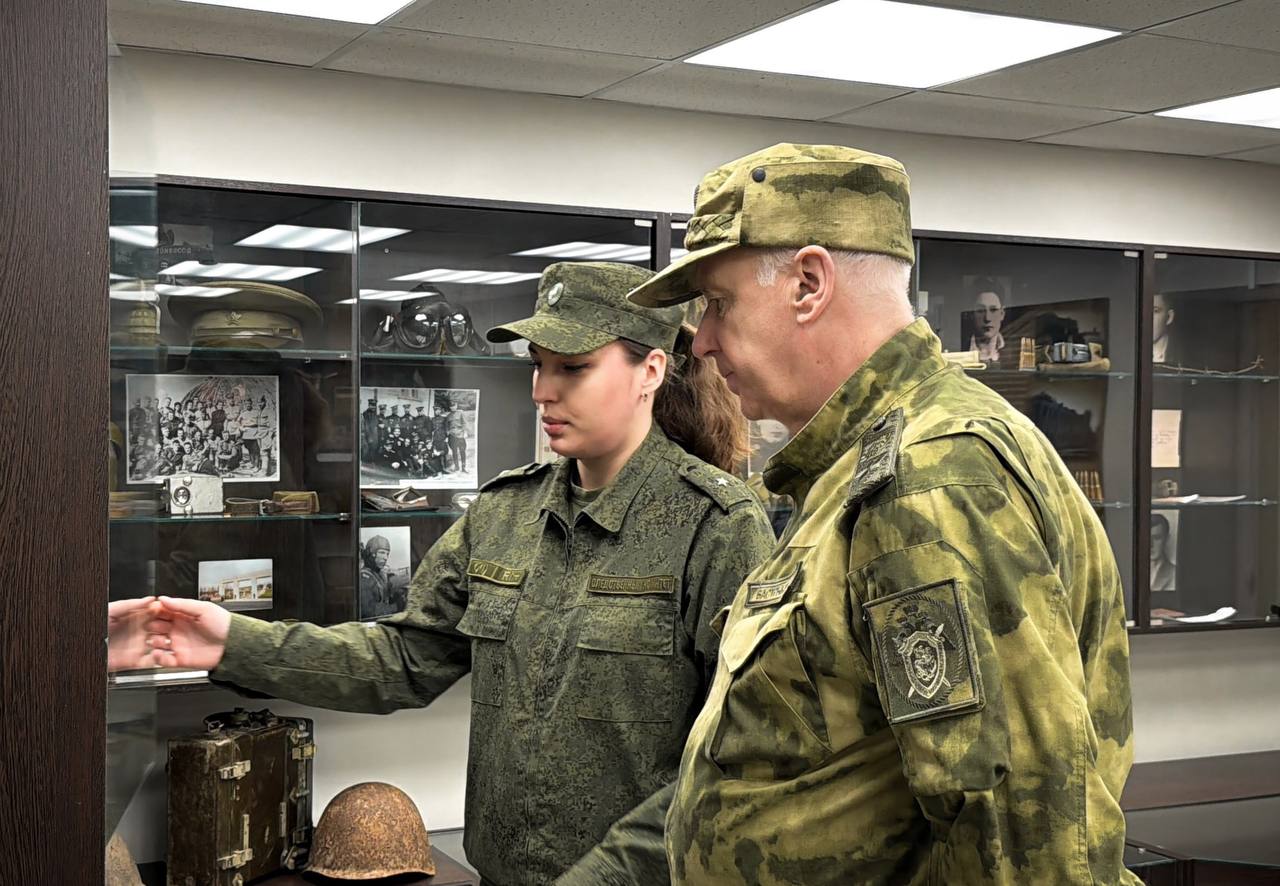 В рамках рабочей поездки А.И. Бастрыкин осмотрел обновленную экспозицию музея следственного управления по ЛНР, посвященную истории Луганщины в годы Великой Отечественной войны, событиям 2014 года – началу конфликта в Донбассе и проведению специальной военной операции. Оценив экспозицию, Председатель СК России предложил проводить в музее экскурсии для кадет ведомственных классов.