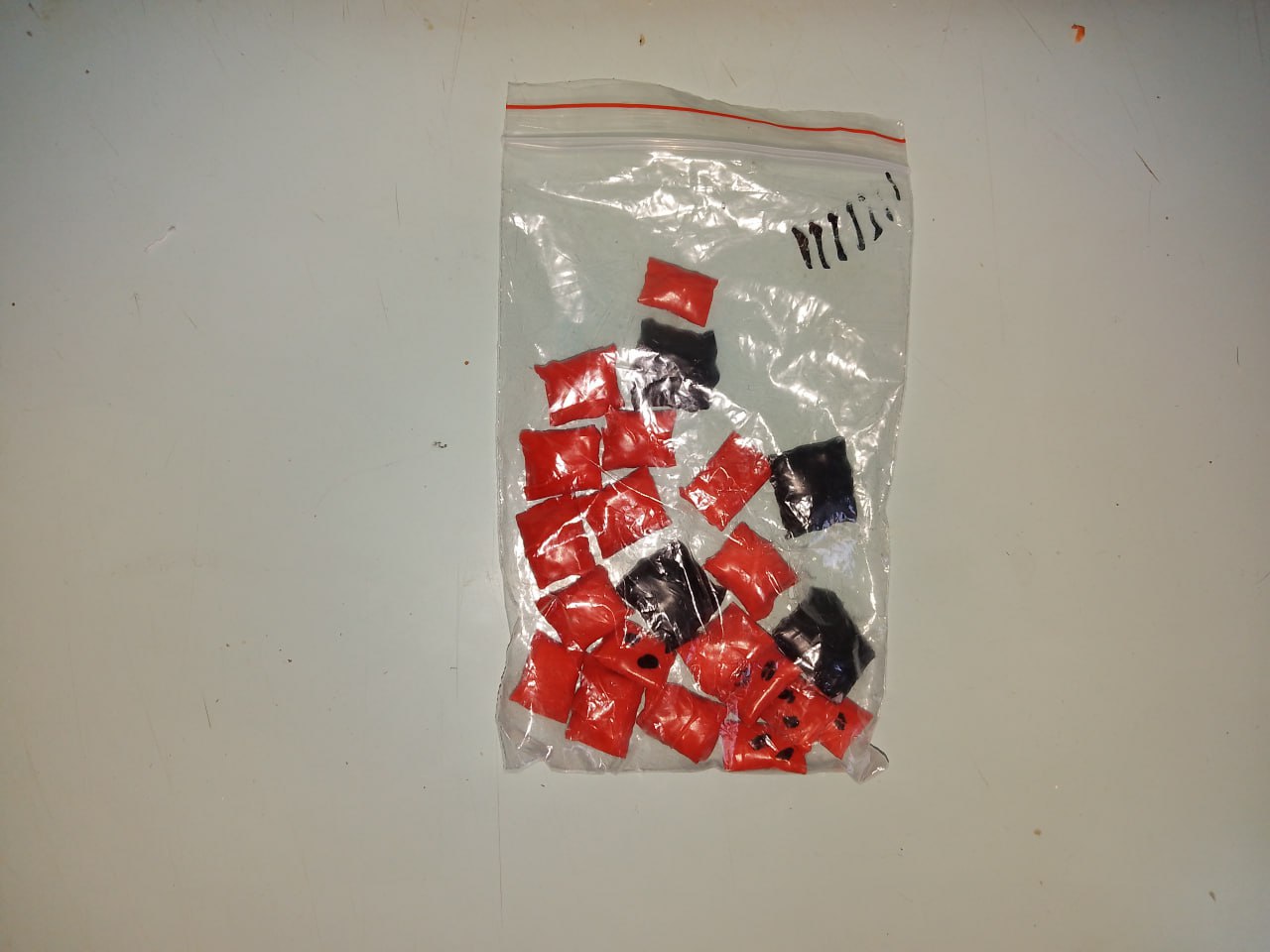 Во время обыска, проведённого по месту жительства подозреваемой, полицейские выявили и изъяли 22 обмотанных изолентой свёртка с наркотическим веществом, а также прозрачный пакет с растительным веществом.