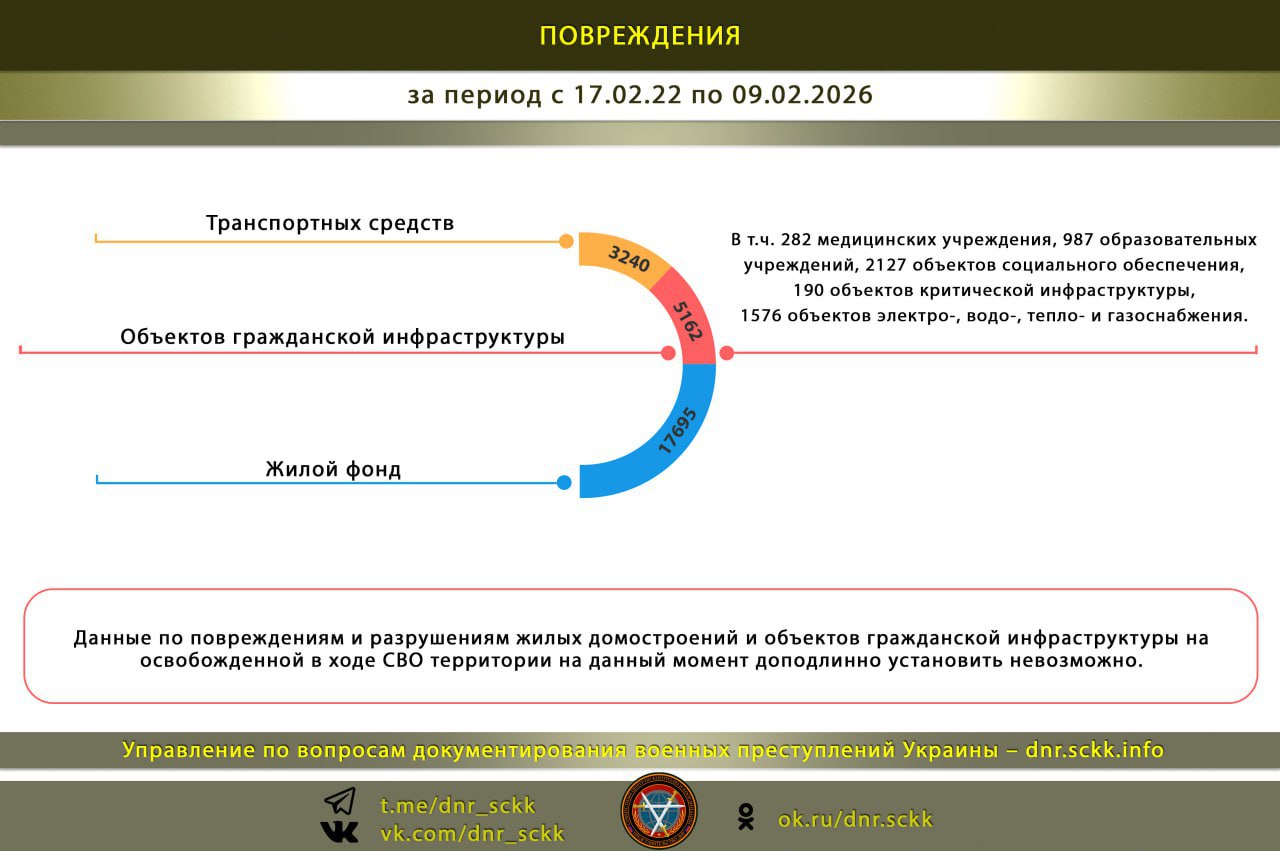 Официально о последствиях вооруженных атак ВСУ на территории Республики (за период с 17.02.2022 по 09.02.2026; 23:00).