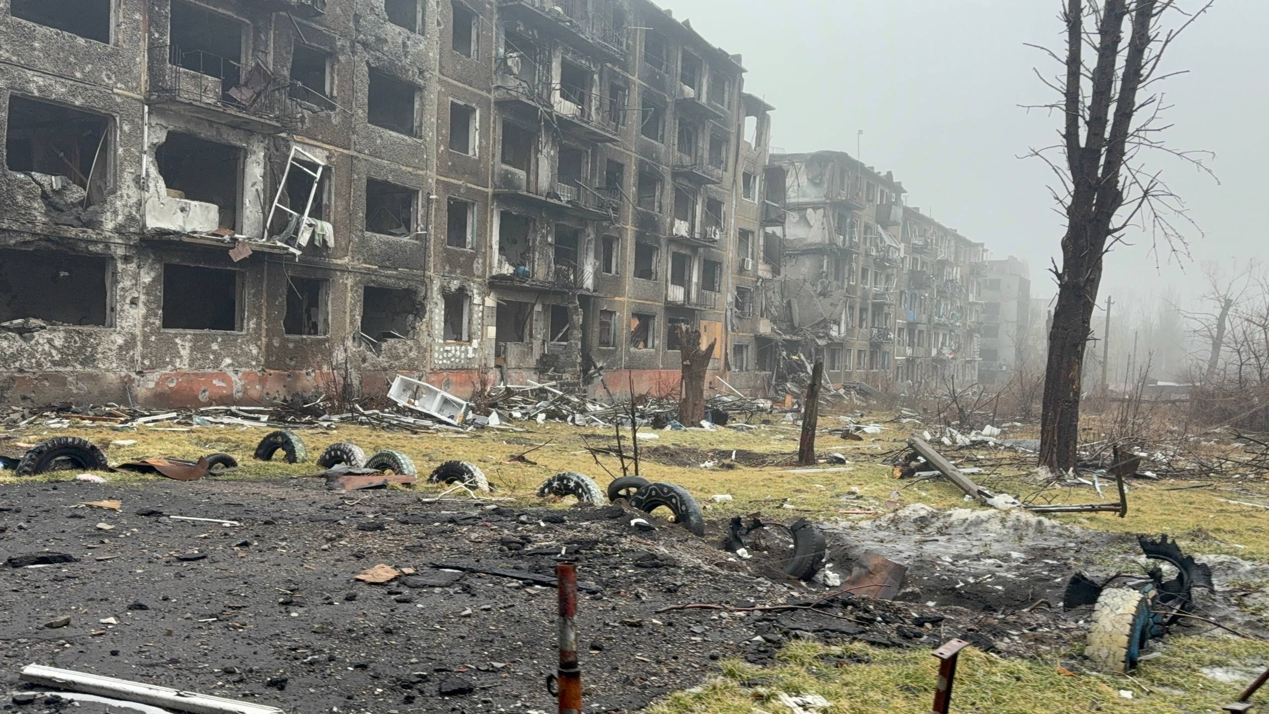 Вместе с очередным проводником двигаемся к центру, наблюдая, как живет прифронтовая логистика, пока позволяет погода. Весь город приходит в движение и такелажники своими «муравьиными» тропами молча двигаются пешком из одного конца города в другой. Туда тащат на себе боеприпасы и топливо, обратно — пустые канистры и тележки с ранеными. Мы топаем своей дорогой, проходя мимо разбитого корпуса центральной больницы. У пандуса приемного покоя — свежая кровь на сером бетоне. Обгоняем связистов, которые тянут куда-то оптоволокно, чтобы запустить интернет на очередном ППУ.