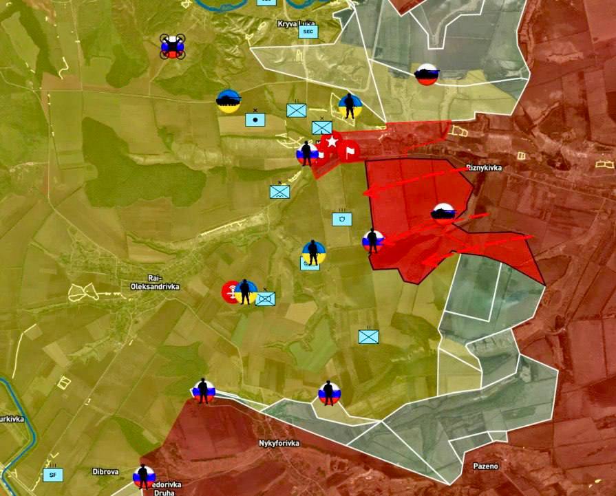 Славянское направление. ВС РФ зачистили опорный пункт противника южнее н.п Каленики. Продвижение ВС РФ на 2,5 км в направлении Рай-Александровки.