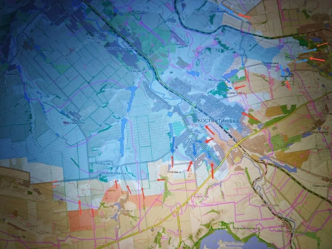 Севернее Константиновки наши войска возобновили встречные бои за Веролюбовку. Этот район имеет для противника критически важное значение. Дальнейшее продвижение здесь, особенно вдоль ж/д, ставит под угрозу окружения не только гарнизон Константиновки, но и угрожает выходом ВС РФ на господствующие высоты у восточной окраины Дружковки.