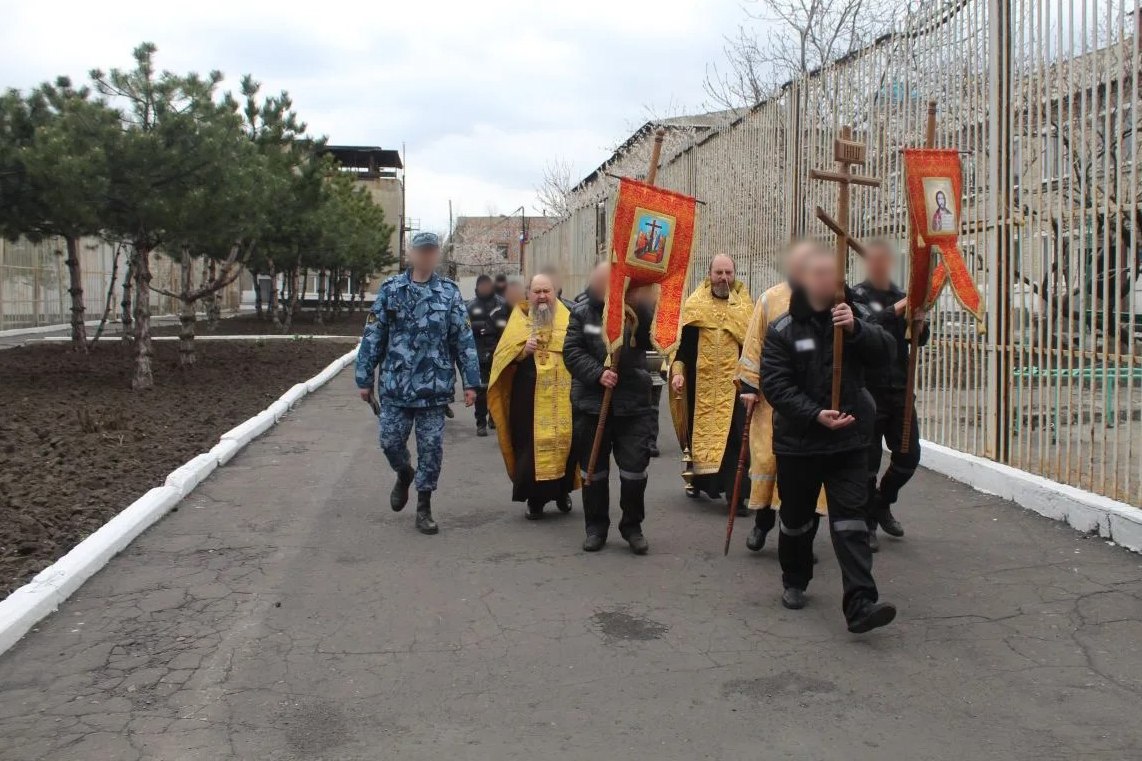 Во время церковной службы осужденные имели возможность помолиться и причаститься Святых Христовых Тайн, также под звон колоколов приняли участие в крестном ходе, который совершили священники.