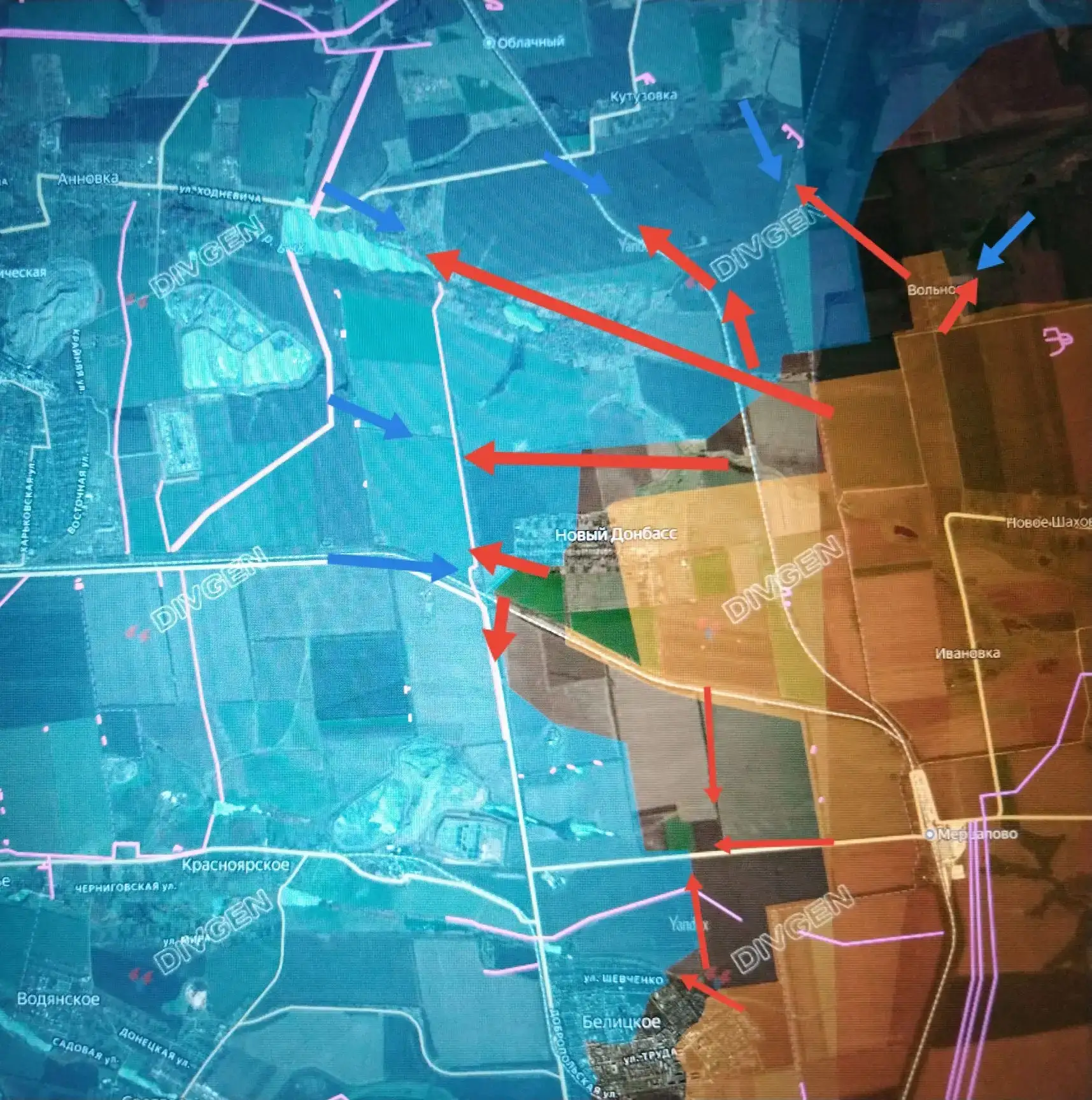 Севернее наши подразделения атакуют на рубеже Вольное – Дачные участки в направлении Кутузовки, Анновки и в направлении Кучеров Яра (с юго-запада).