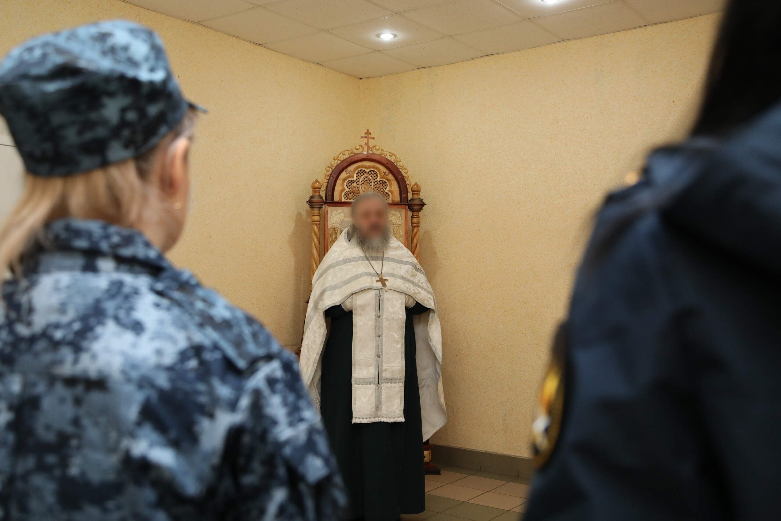 Помощник начальника ГУФСИН России по Донецкой Народной Республике по организации работы с верующими отец Олег совершил богослужение по пасхальному чину для сотрудников территориального органа.