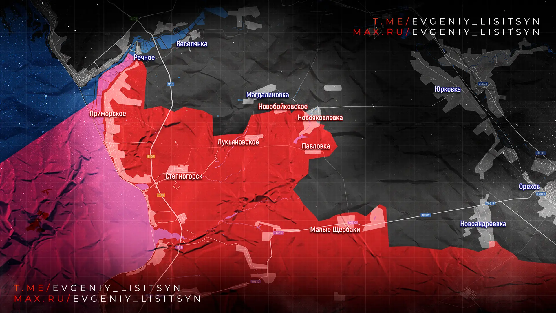 Вышли к каналу у Дибровы, бои за Рай-Александровку. Есть заход на окраины. Давим к Брусовке и Старому Каравану.