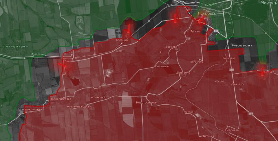 «На Покровском направлении продолжаются ожесточённые бои.Российские войска атакуют Дорожное. На восточном фланге ВС РФ захватили большую часть Владимировки.Под Покровском российские силы штурмуют Чунишино и Лысовку.Восточнее Мирнограда ВС РФ...