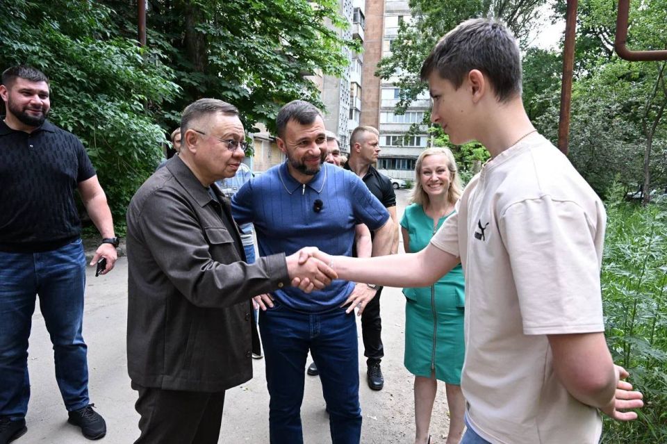 Осмотрели жилье в районах, пострадавших от обстрелов. В Петровском районе Донецка состоялась встреча с жильцами многоквартирного дома на ул. Стаханова, где обсудили, каким местные жители хотели бы видеть восстановление своего дома и развитие города в целом.